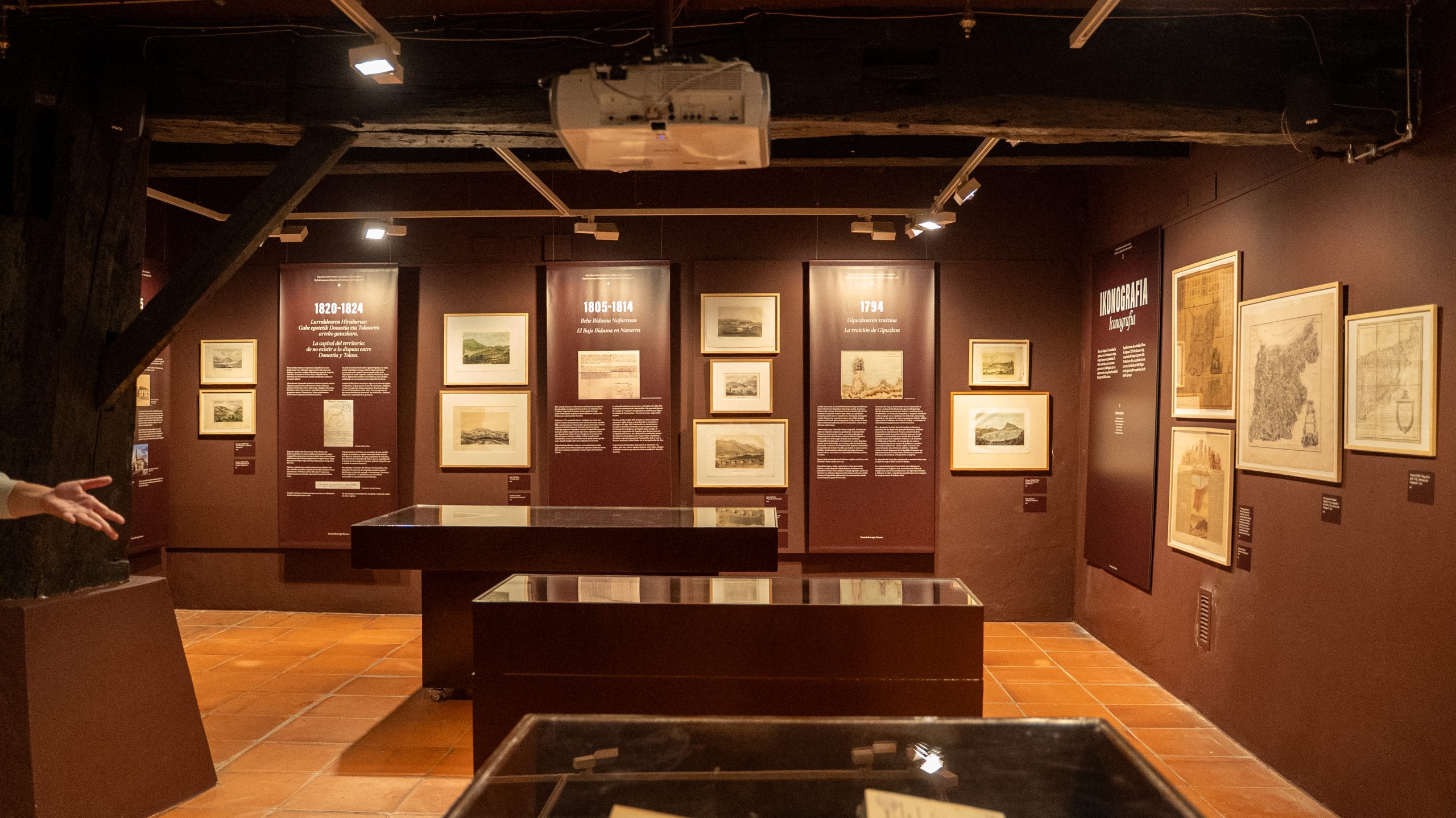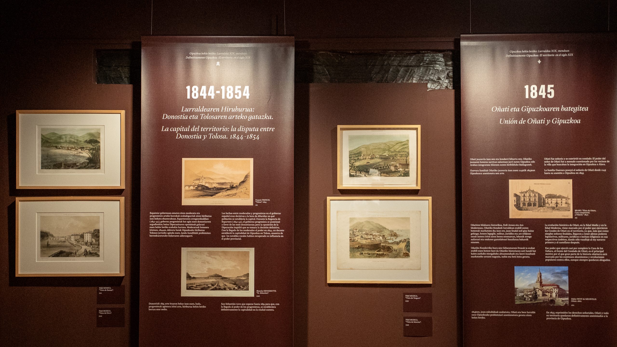 La exposición también alberga tres vitrinas y un mapa interactivo, incluyendo el mueble. En el mapa interactivo se presenta la limitada iconografía existente de los municipios de la provincia con una selección de imágenes de 50 localidades guipuzcoanas, todas creadas en el siglo XIX. La consulta se puede realizar de dos formas; geolocalizadas sobre un mapa de época interactivo o a través de una galería en la que se pueden visualizar todas.