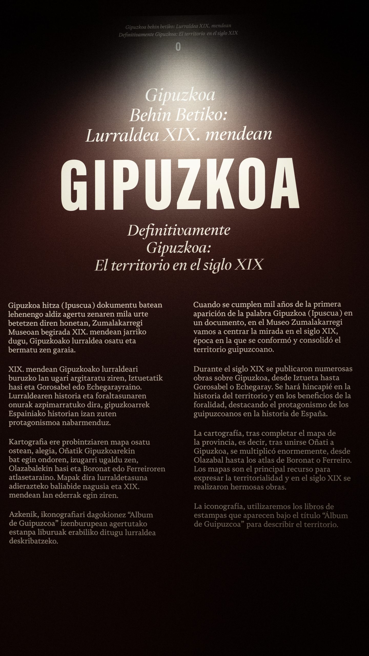El objetivo de este proyecto ha sido trasladar al ámbito expositivo una reflexión cultural sobre el territorio de Gipuzkoa en el marco de la conmemoración del primer milenio de la aparición de la palabra “Ipuscua” en un documento.